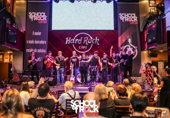 Alunos da School of Rock Curitiba sobem ao palco do Hard Rock Cafe em jam session aberta ao público